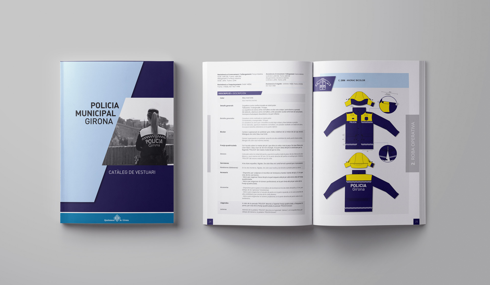 Disseny i maquetació de catàleg de 185 pàgines del vestuari de la Policia Municipal de Girona.