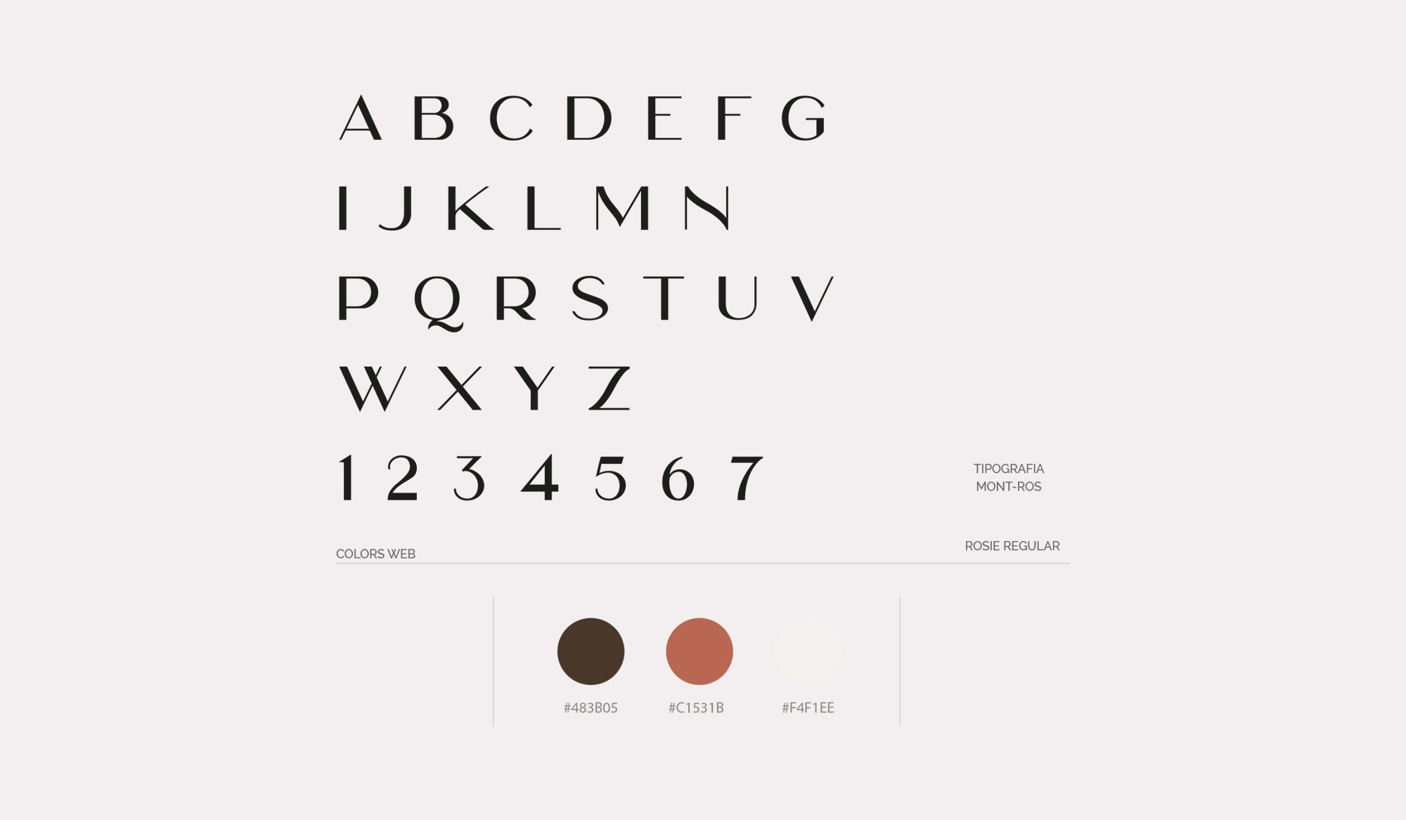 S’ha escollit la tipografia “Rosie” una font sencilla però amb molta personalitat, que evoca elegància i refinament. Aquesta elecció reflecteix la qualitat i exclusivitat dels productes i serveis que ofereixen.