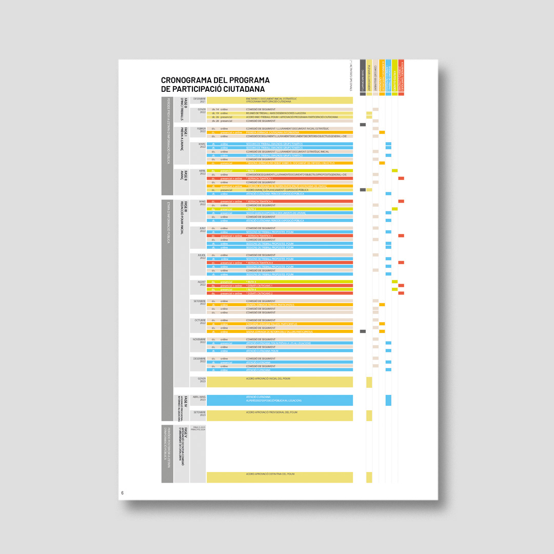 Els colors utilitzats en el logotip també són representatius per les diferents àrees del Poum. El blau per l’apartat de Grups Temàtics i Atenció Ciutadana, el color terrós per Xerrades i Debats, el color ataronjat per Jornades i Tallers i el color verd per l’apartat de Rutes i Plànols.