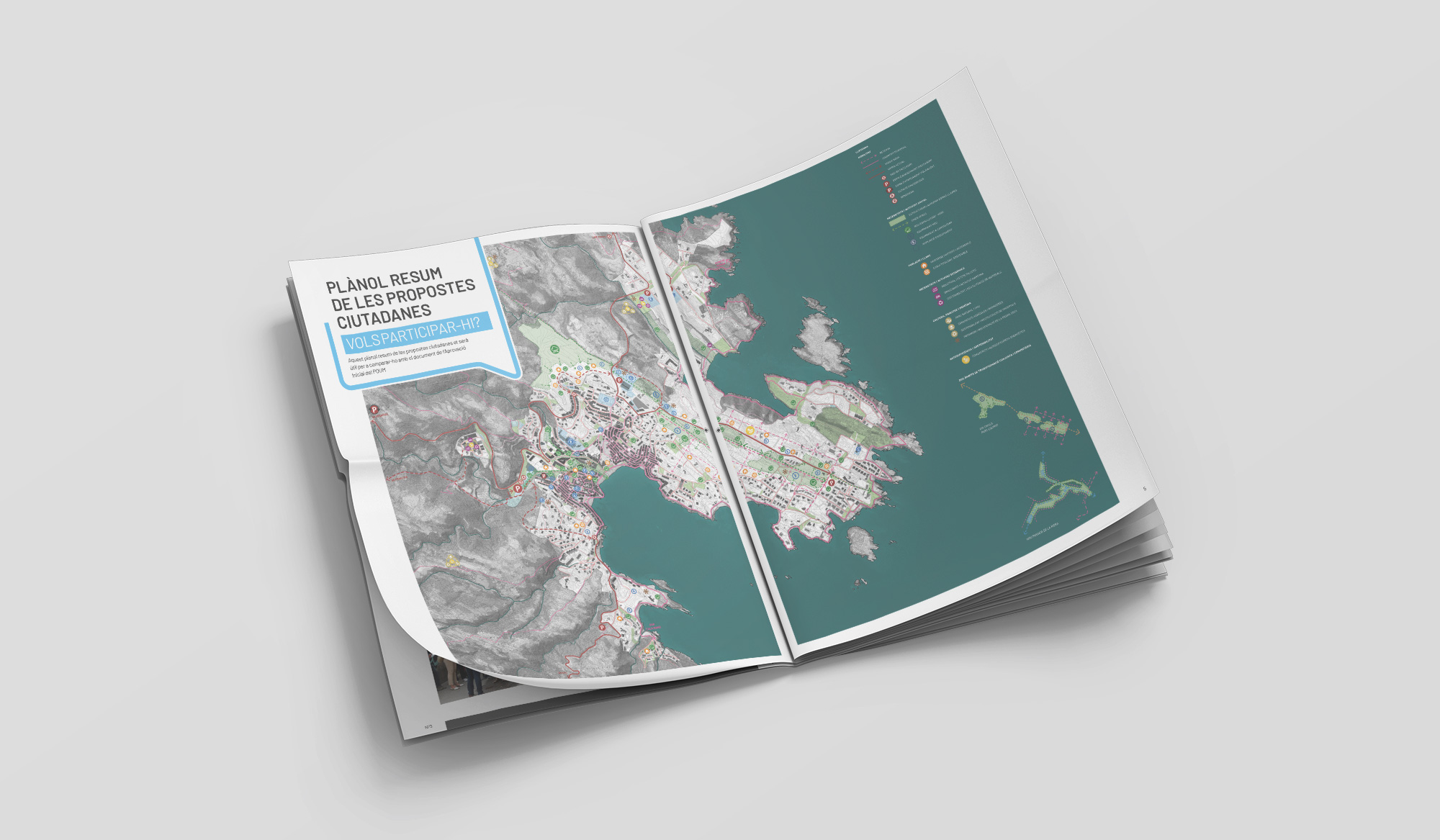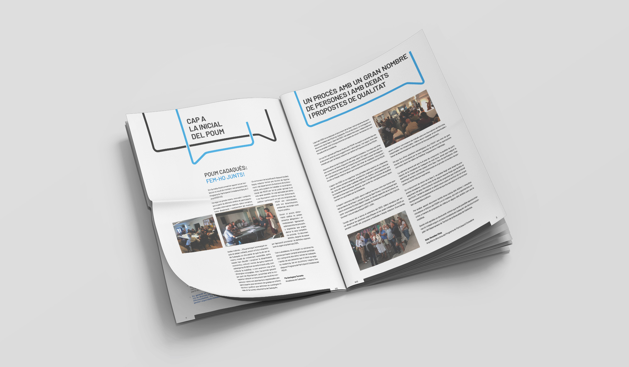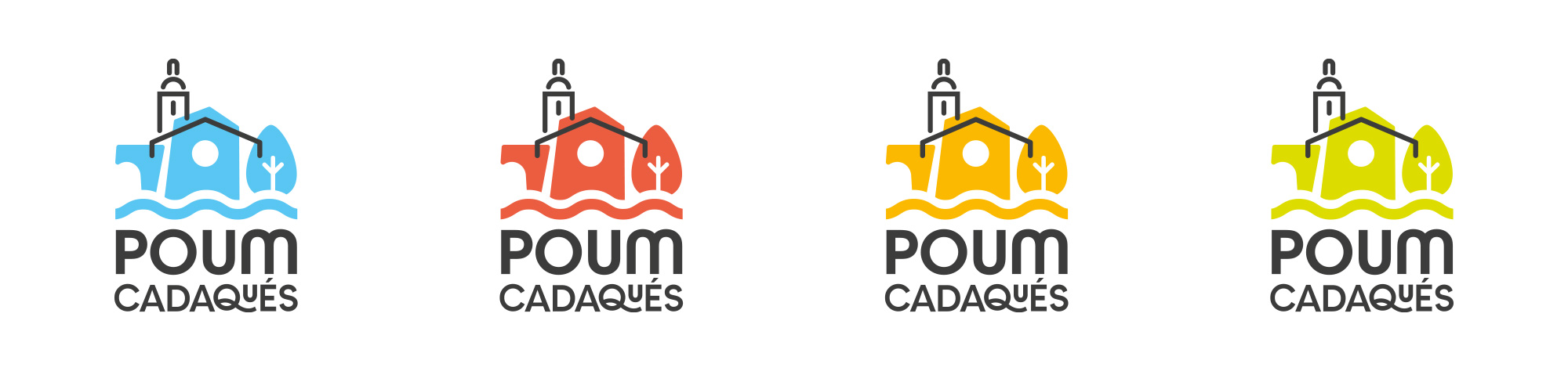 El disseny per al logotip POUM CADAQUÉS és un disseny molt gràfic amb elements de línia barrejats amb formes que fan que s’identifiquin els elements més característics del poble de Cadaqués: l’església, els carrers i la natura que l’envolta.